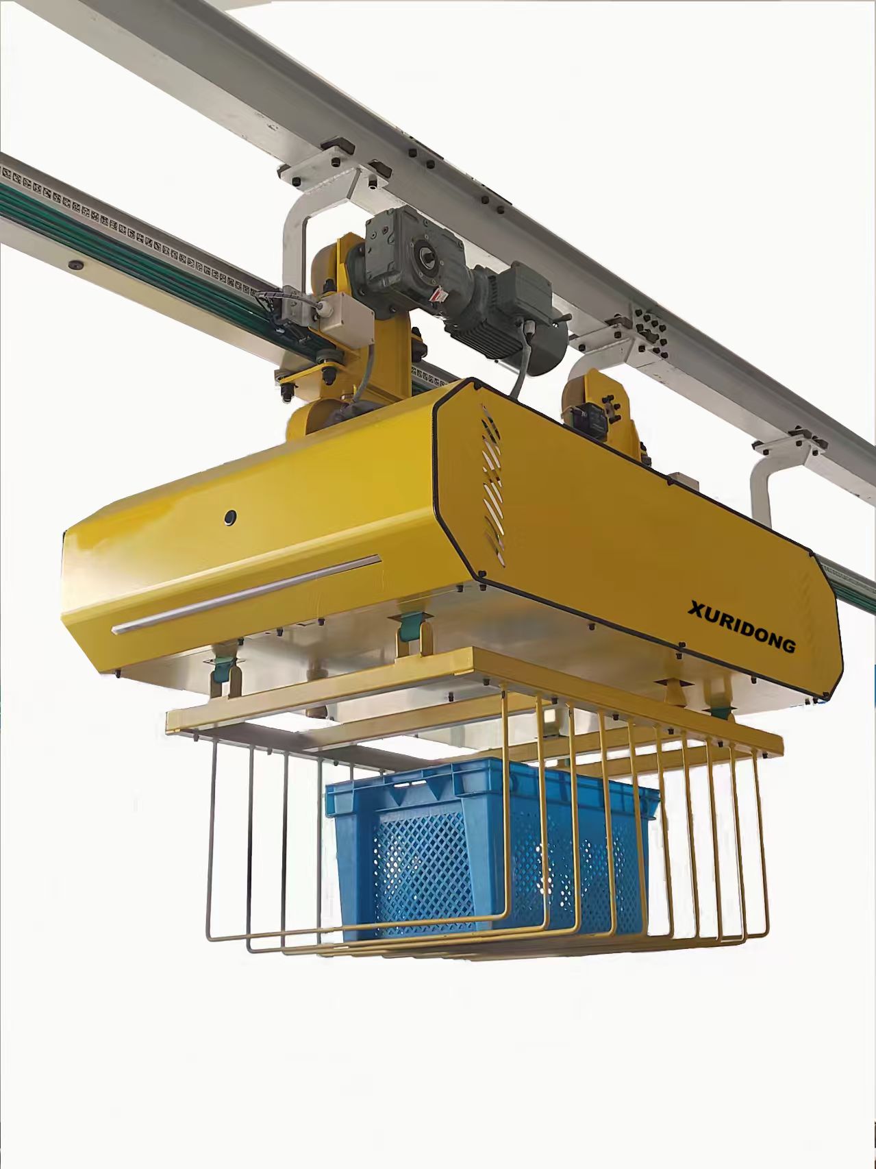 此输送系统安装于天花板、钢架及房梁,规划及行驶与地面设施人员没有冲突,很好的利用了空间